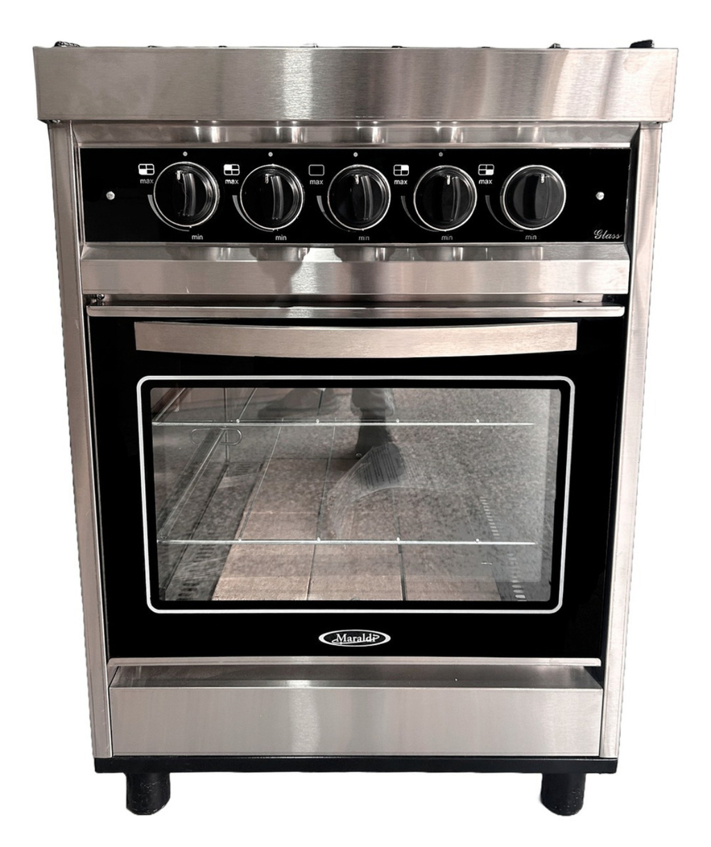 Tres medidas de ancho: 50, 55 y 60 cm. Alto 86cm. Prof. 62cm. Peso aprox. 45 Kg. Construida en Acero inoxidable. Equipado con válvulas de seguridad en horno, que en caso de ausencia de llama corta el paso del gas en el mismo.